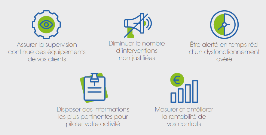 Nous vous accompagnons dans la mise en place, chez vous clients, d’objets connectés ou transmetteurs afin de recevoir les alarmes, les analyser et les transmettre à vos services si besoin. Ainsi nous pouvons collecter un maximum de données et vous signifier les éléments pertinents.